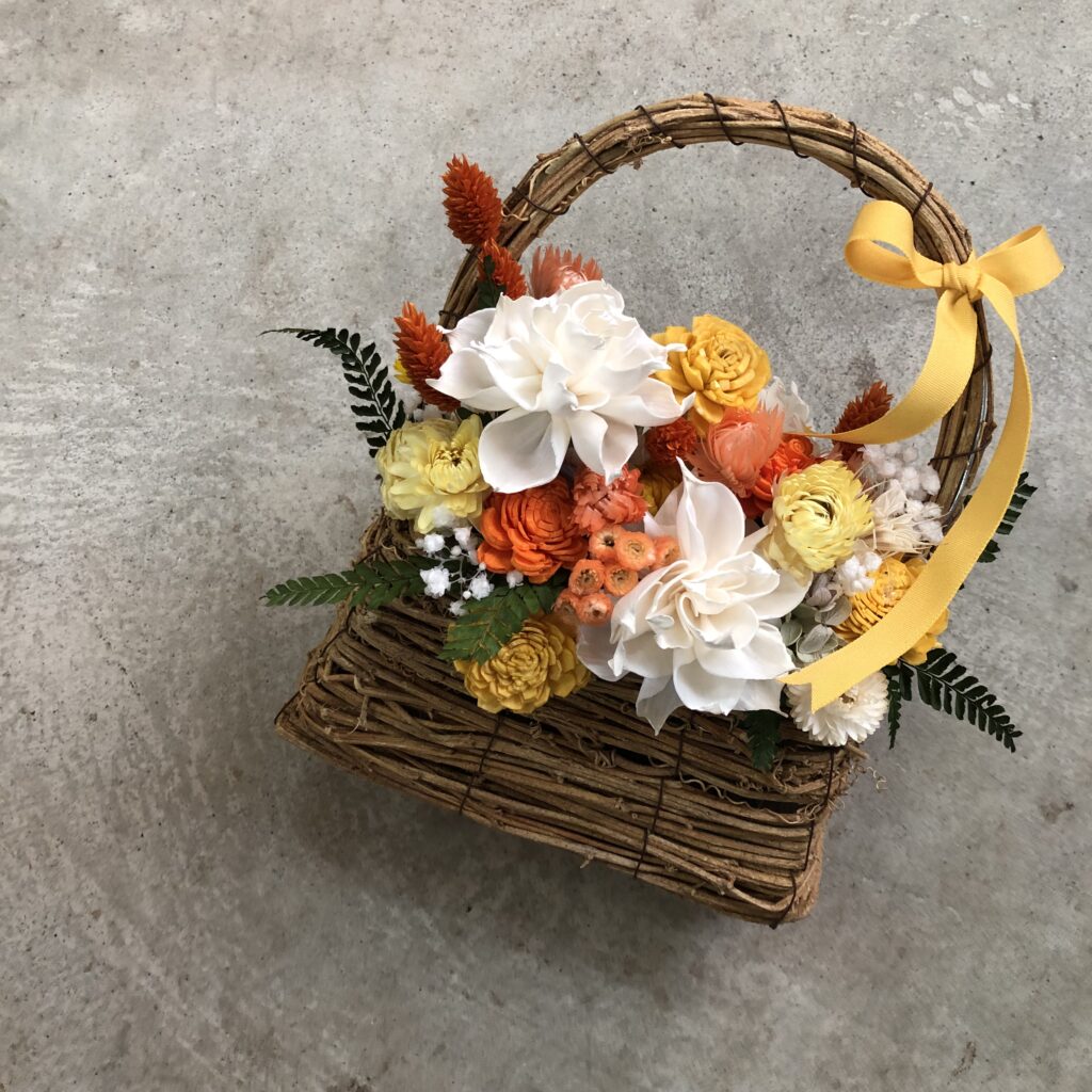 ご注文のオレンジイエロー系アレンジ。